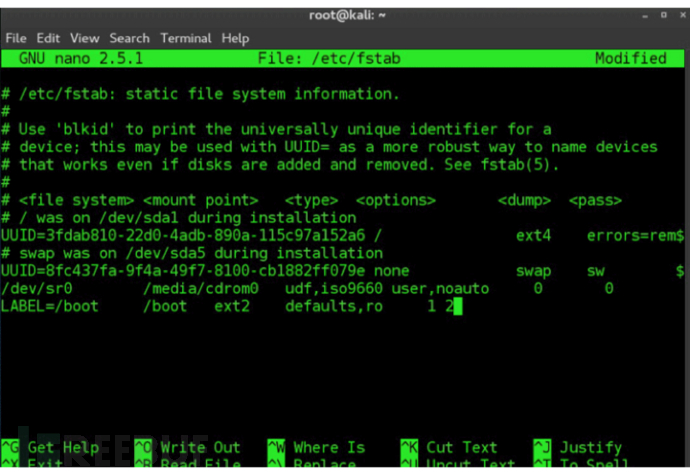 boot目录中包含大量的重要文件,这些文件与Linux内核有关,所以你需要通过下列步骤来确保这个目录只开放了“只读”权限。首先,打开“fstab”文件。