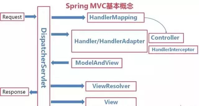 静态概念:如图下示。DispatcherServlet就是Spring MVC的前端控制器。