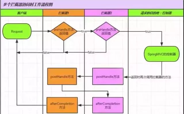 ②如果还有其它的拦截器,将执行拦截器二、拦截器三…进行拦截。