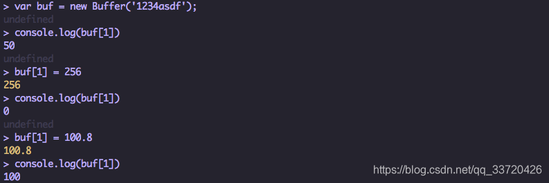 - 如果某个位置设置为一个大于 255 的数,那么将会用 256 对概述取模,最终取模结果赋给该位置;设置为小数,则会取整;给超出边界的位置赋值,会失败,缓冲区不会发生变化