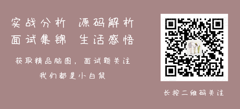 如果大家想要实时关注我更新的文章以及我分享的干货的话,可以关注我的公众号 我们都是小白鼠。公众号内有一些整理过的 原创精品脑图,不仅包含技术点的知识脉络,更多的底层原理的梳理,目前涵盖 Redis,RabbitMQ,Mysql,Java 虚拟机等 ,这些都是博主自己的学习笔记,整理的过程花费了很多心血,除此之外还有一些整理过的 面试题 以及日常开发常用到的一些 开发工具 等,在公众号内分别回复【技术脑图】、【面试题】、【开发工具】即可获取。