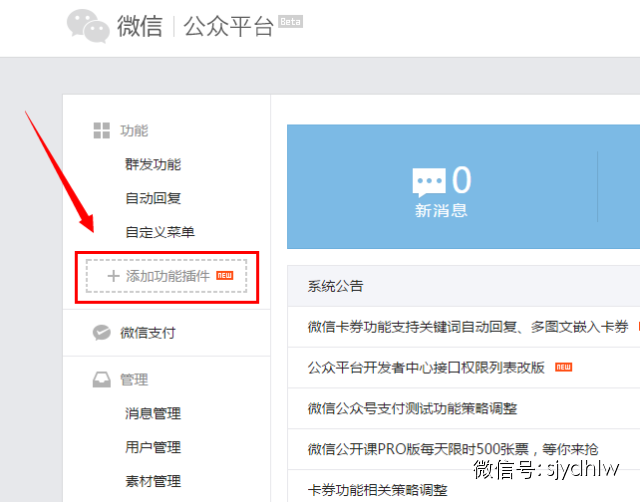 1、入口位置位于微信公众平台左侧的添加功能插件“+”(加号)栏。