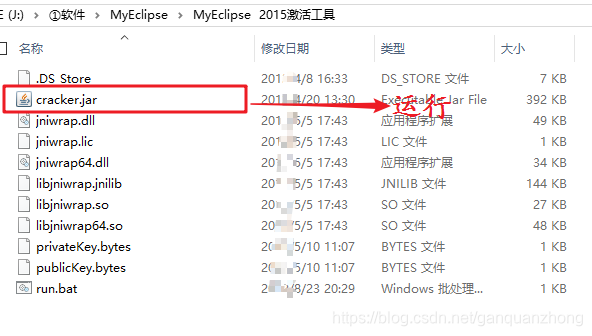 ① 双击“MyEclipse激活工具”目录下的cracker.jar运行激活工具(如果双击不能运行,可以单击鼠标右键,在打开方式中选择“Java (TM)…”,或者可以双击同目录下的批处理文件run.bat来运行)。