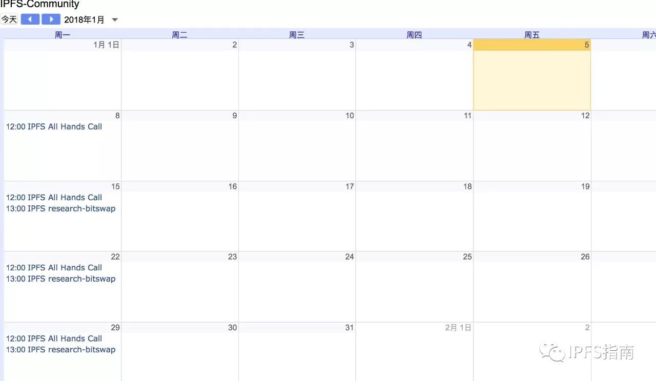 IPFS团队的Google日历