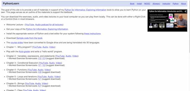 去看几分钟它的第一堂课,看看你是否喜欢那个老师,然后决定是否开始学习Python!官方主页有这些练习题和例题的所有链接。