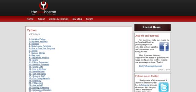 如果你更喜欢使用视频学习,我不确定是否还有比The New Boston的Python系列视频教程更全面的了,许多其他的编程语言也可以在他们的YouTube频道里找到。