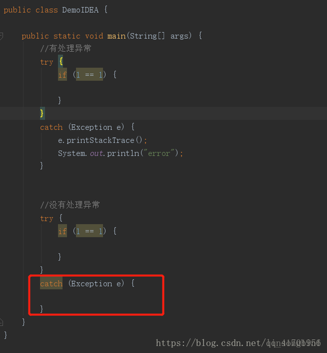 想在整个工程里面找到所有的try catch语句,但是catch语句里面没有做异常处理的。