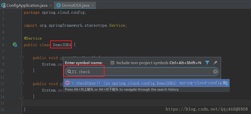 你想找到checkUser方法。直接输入user即可。