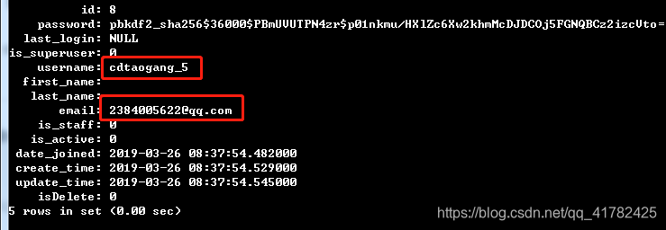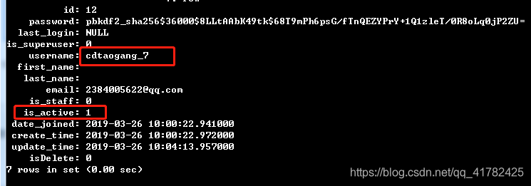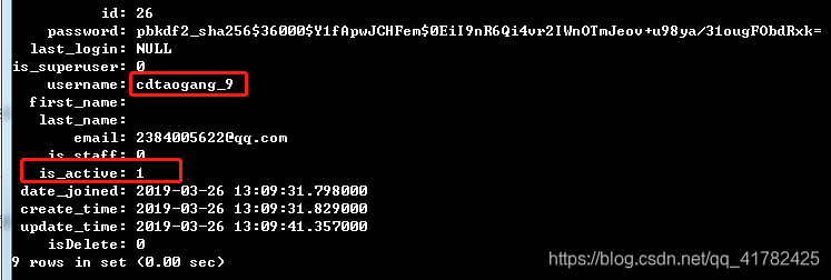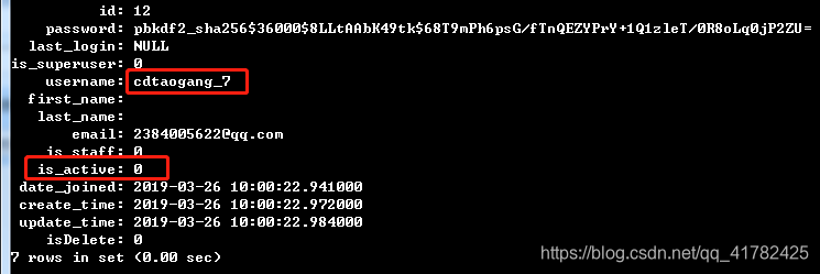 - step14 django认证系统默认用户表字段is_active为1(激活),所以这里需要进行设置为0(未激活)