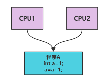 - 一台计算机有2个cpu,其中CPU1执行程序A,CPU2执行程序B,由于程序A和程序B是两个不同的应用程序,所以它们两个之间并不存在并发问题。