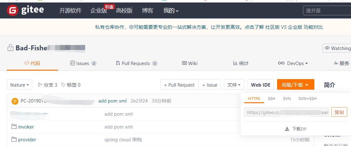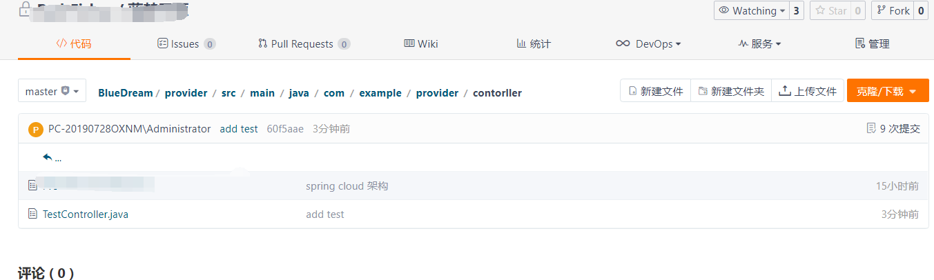 一.创建项目 1.打开官网 2.填写相关内容 查看新创建的项目 3.选择方式 4.在git上新建文件夹 1)克隆: mkdir workspace 将代码克隆到本地,取本地配置的.ssh的文件 git ...