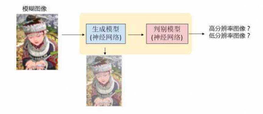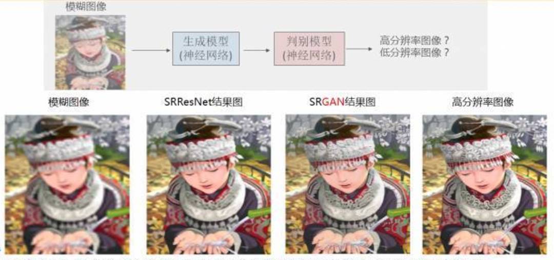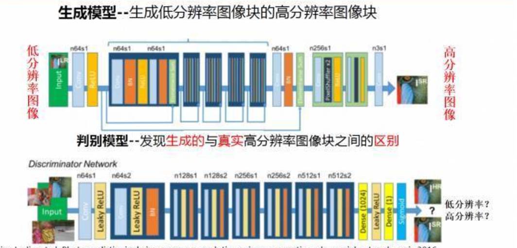 生成模型要将模糊的低分辨率图像作为输入,并输出一个高分辨率的清晰图像。而判别模型,就要判断所输入的图像究竟是“真实高分辨率图像”还是由低分辨率图像“转化来的高分辨率图像”。而这就 大大简化了图像超分辨率模型的学习过程。因为传统上做一个图像超分辨率,都要去对一些高频细节进行建模,而这里生成模型训练目的就简化为迷惑判别模型。