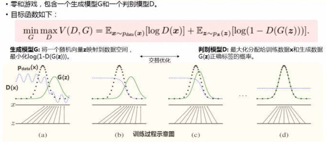 GAN 模型包括了一个生成模型 G 和一个判别模型 D,GAN 的目标函数是关于 D 与 G 的一个零和游戏。也是一个最小-最大化问题。