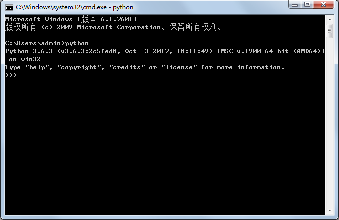 命令符下输入python显示“ 》》》“,表示进入了交互模式
