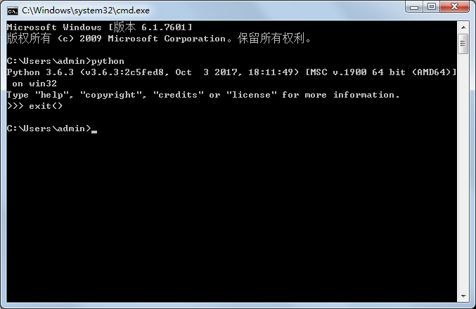 在Python交互模式下输入exit()并回车,就退出了Python交互模式,并回到命令行模式: