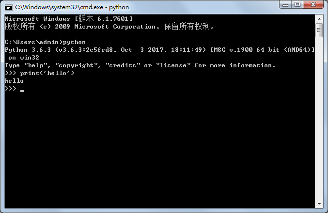 在命令行模式下,可以执行python进入Python交互式环境,也可以执行python hello.py运行一个.py文件