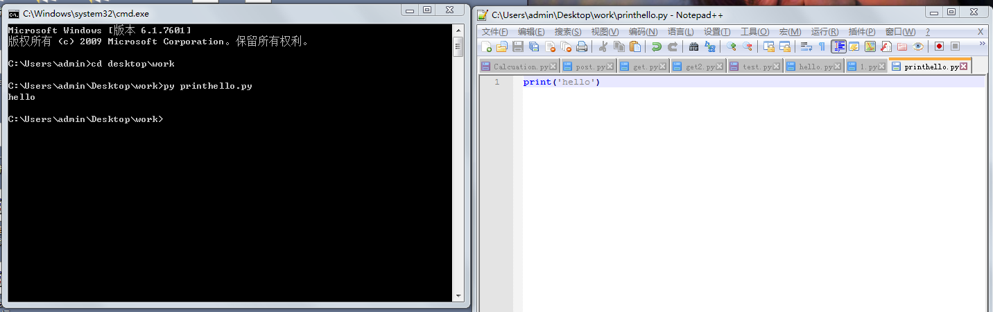用Notepad++保存命令,保存在work文件(自建)内,命令行进入文件,py运行即可!