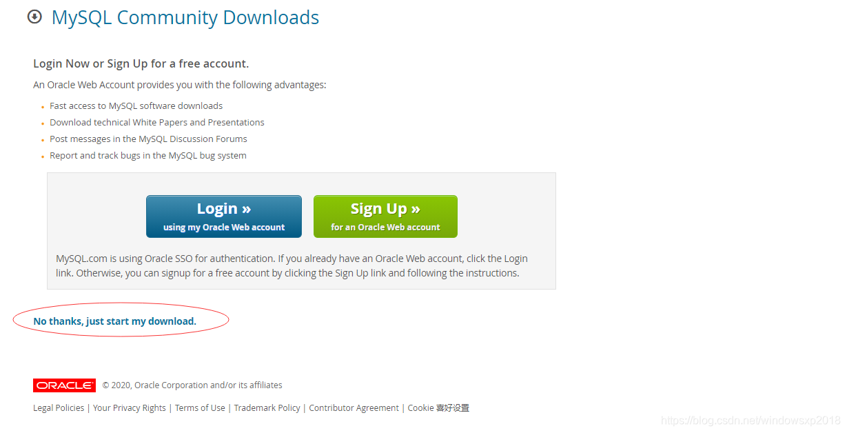进入下载界面后,我们不登录(Login)也不注册(Sign Up)。直接点左下角的【No thanks,just start my download.】即可开始下载。