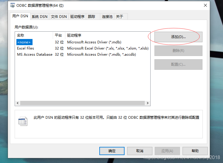 打开控制面板\所有控制面板项\管理工具\ODBC 数据源