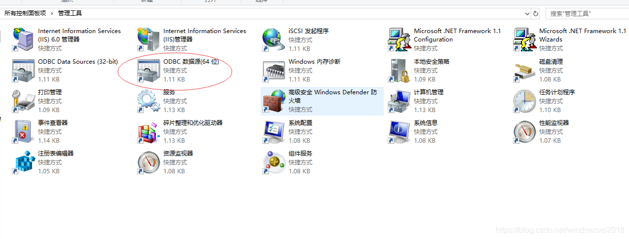 在控制面板下的管理工具,找到ODBC数据源后 双击打开