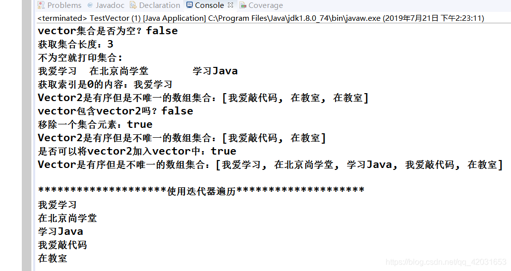 Java修炼——Set的子接口Vector的方法使用