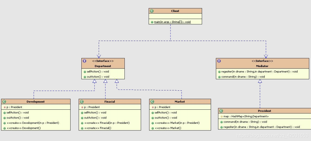 本文接着介绍行为型模式里的解释器模式.迭代器模式.中介者模式. 一.解释器模式Interpret 给定一个语言,定义它的文法的一种表示,并定义一个解释器,这个解释器使用该表示来解释语言的中的句子. 1 ...