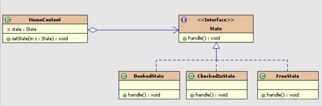 酒店系统中,房间状态变化的相关类图结构: