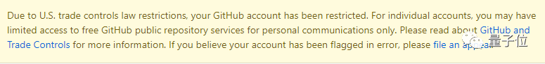 大意是根据美国法规,您的GitHub帐号被限制了。