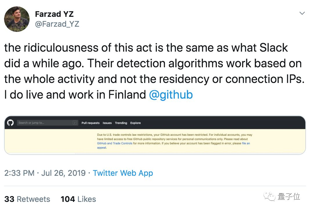即便人在芬兰,国籍是伊朗,也能也会受到GitHub限制。