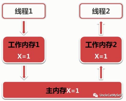 — 不同线程之间无法直接访问其他线程工作内存中的变量,线程间变量值的传递需要通过主内存来完成