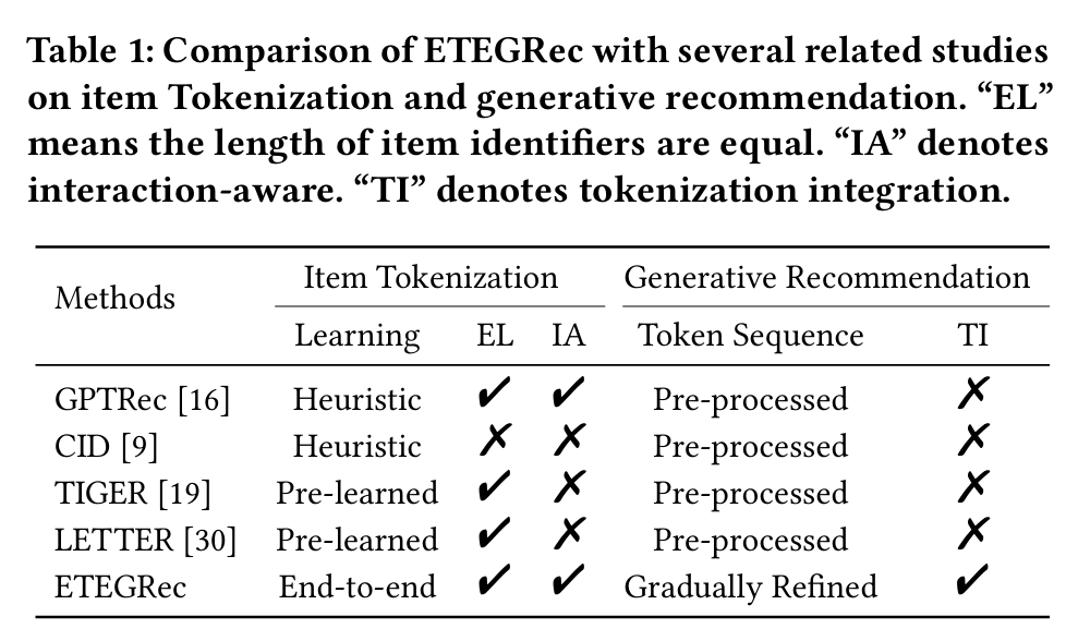- 解耦训练:分词器(构造语义 ID)与生成器(自回归预测)相互独立,优化目标不一致,难以互相适配。