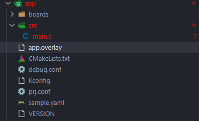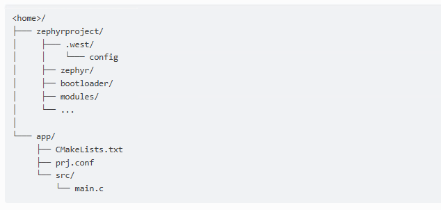 下载了官方例子后,我选择了这种文件结构,使app和zephyr 的源文件分离的模式
