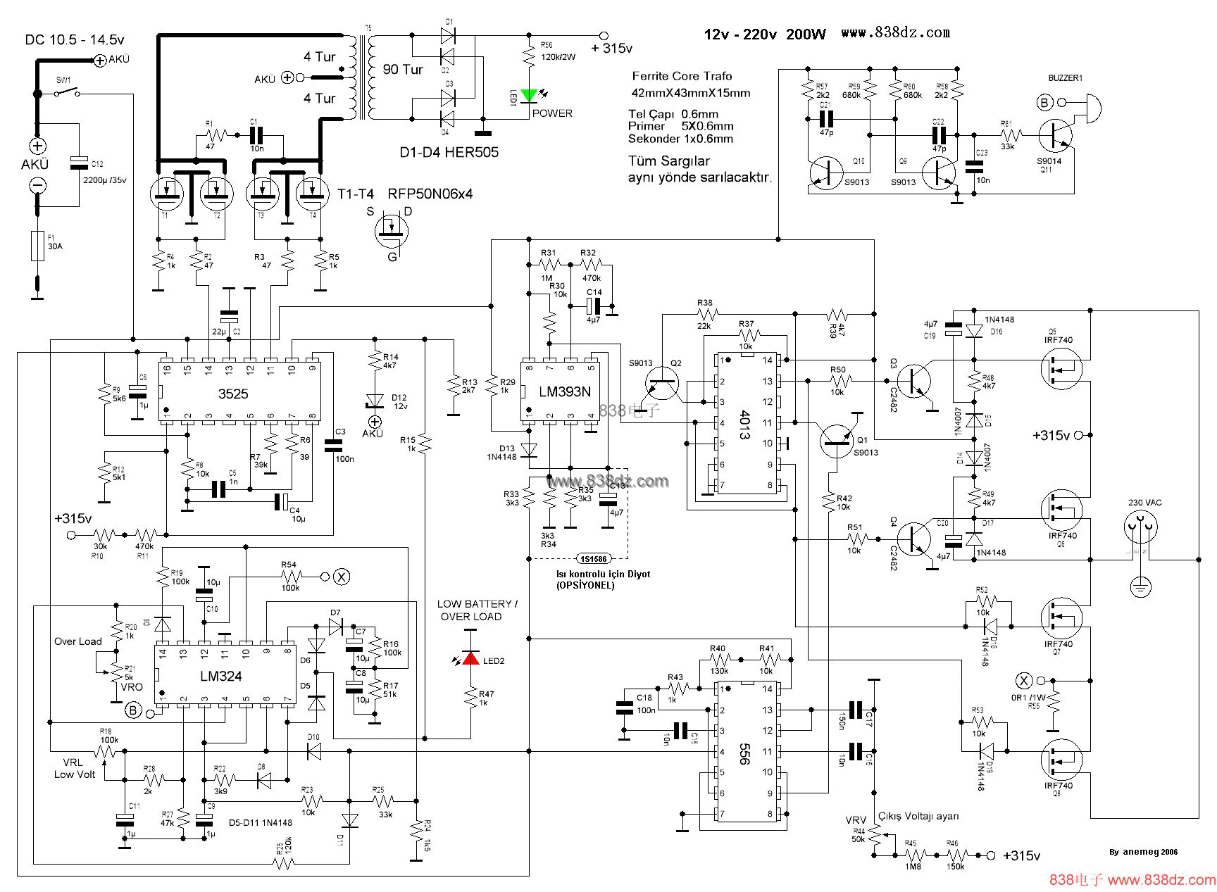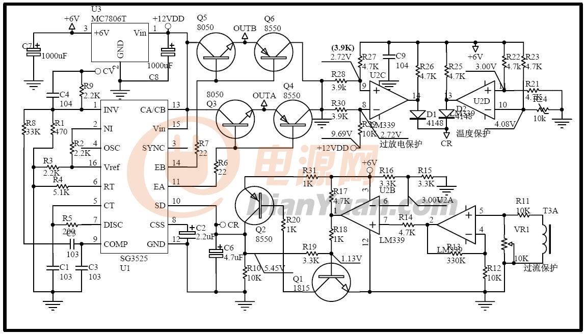 - 逆变器采用SG3525做为控制器,变压器用铁氧体磁芯的E型绕制,