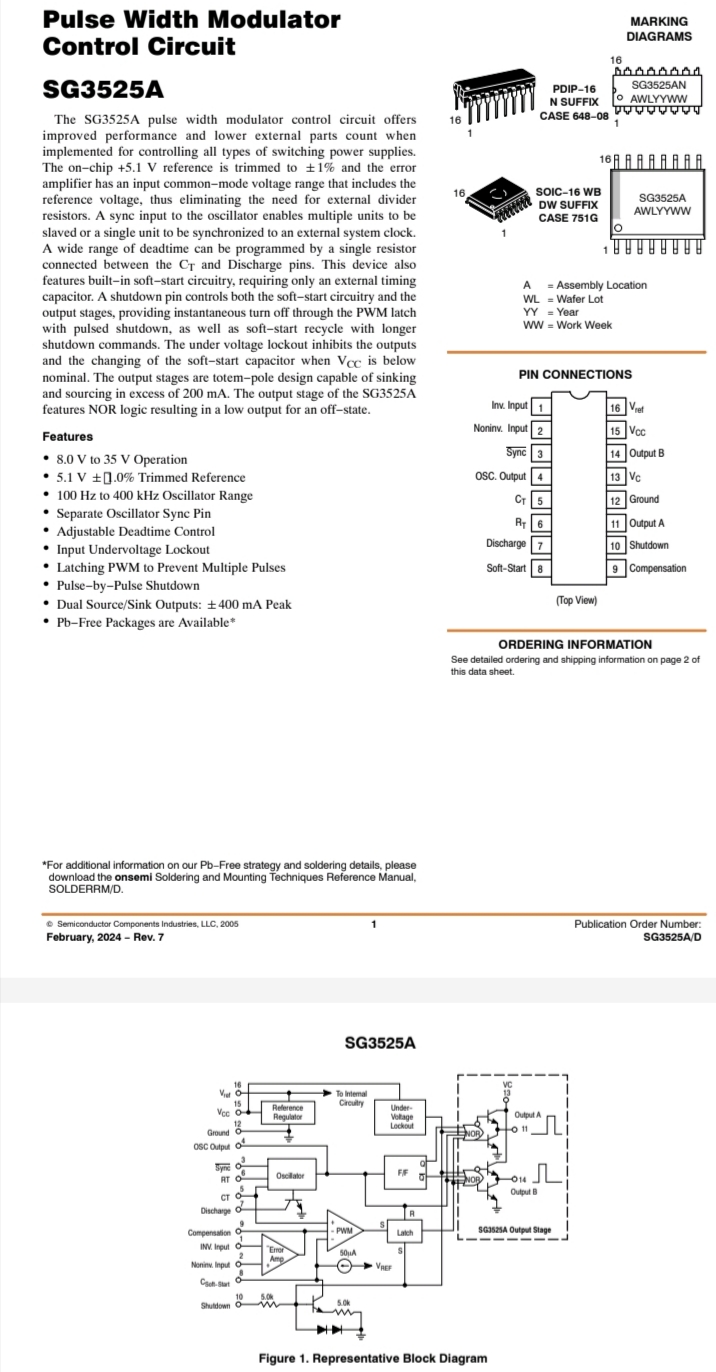 - Onsemi: https://www.onsemi.com/pdf/datasheet/sg3525a-d.pdf