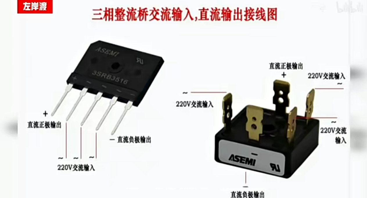 - 3个 4Pin 的 单相整流桥堆 模块 联合 成三相整流;