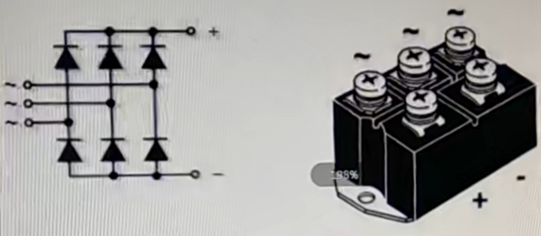 - 6个 2Pin 的 高通能二极管 组合 成 三相整流电路。