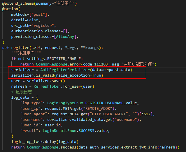 定义用户注册视图,调用序列化器的is_valid()方法,对用户请求参数校验