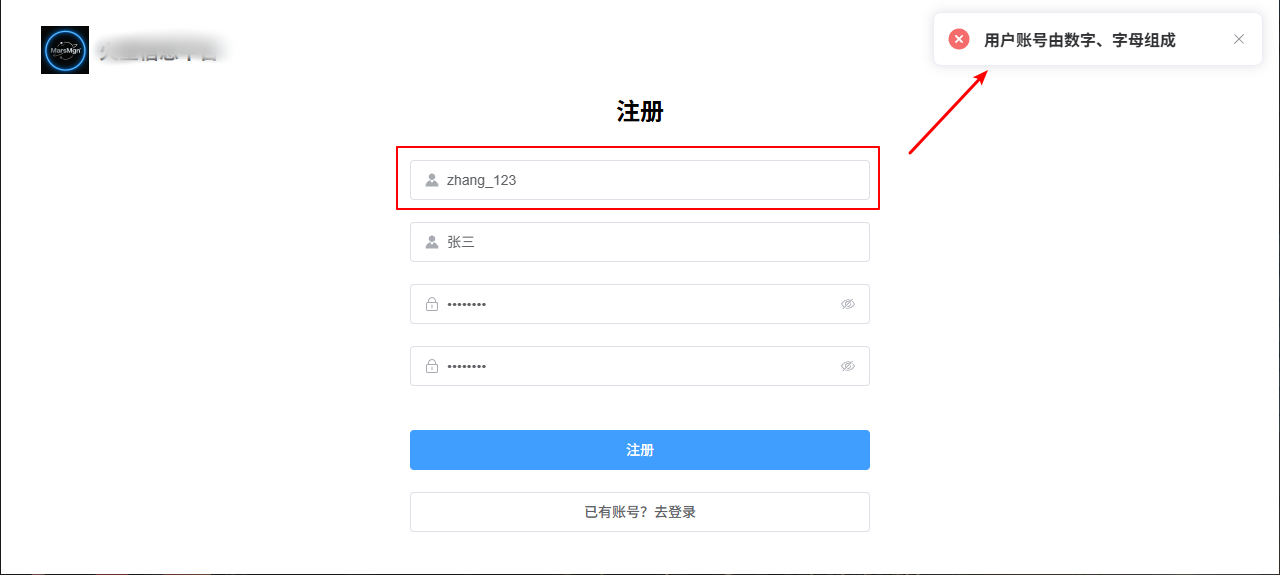 - 校验用户名由字母数字组成、最小长度和最大长度