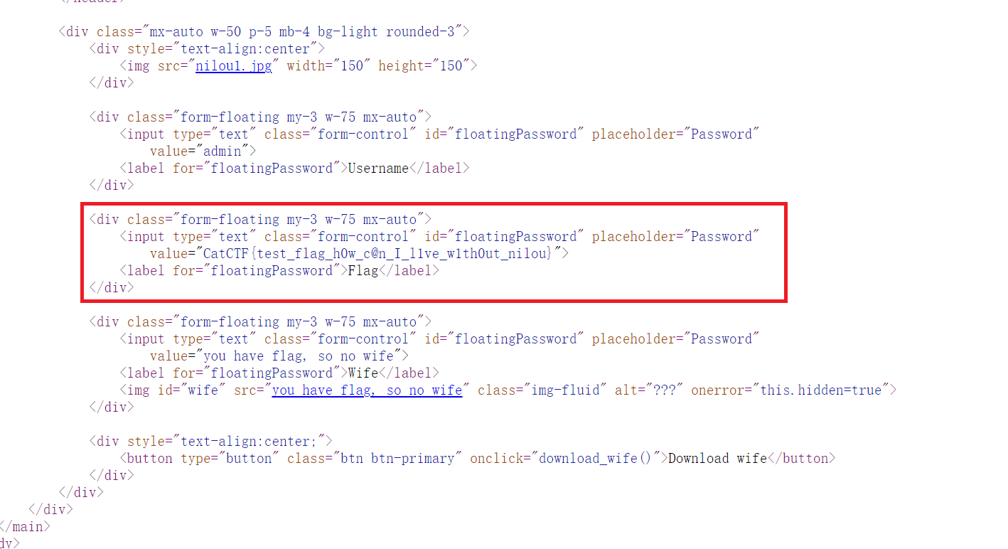 CatCTF{test_flag_h0w_c@n_I_l1ve_w1th0ut_nilou}