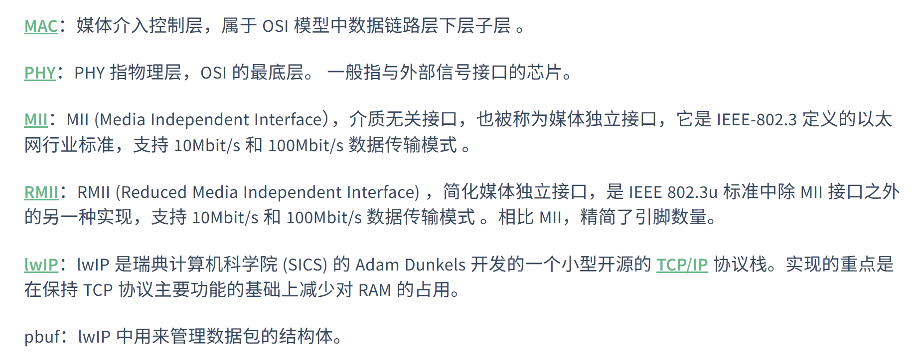 2、名词解释。MAC是将上层的数据进行封包,PHY是物理层。