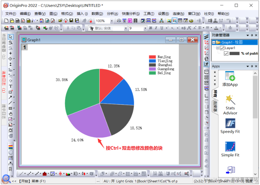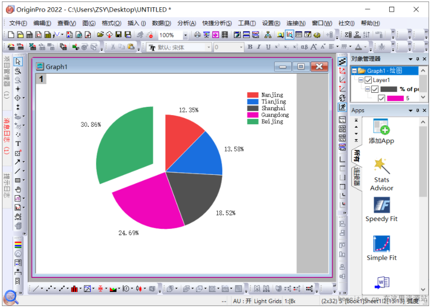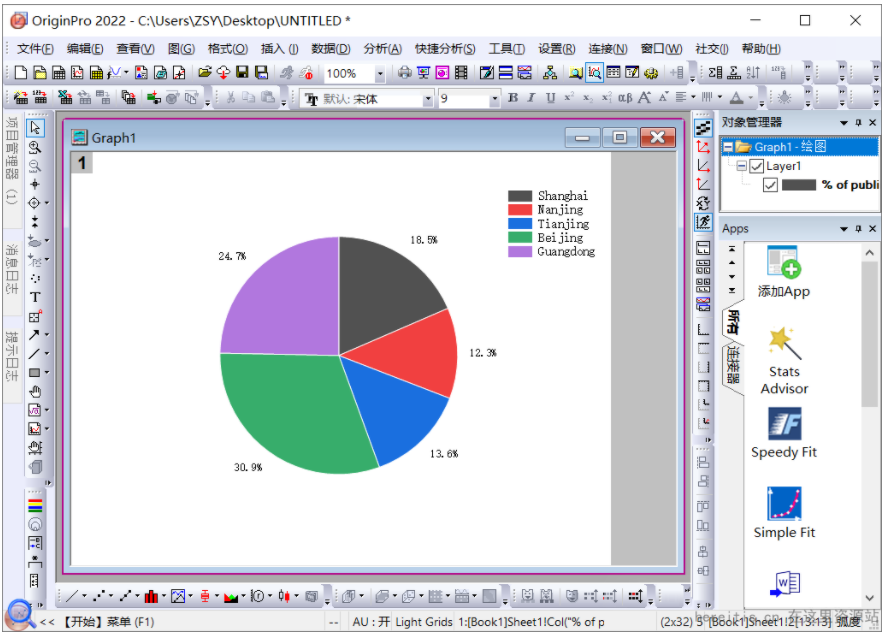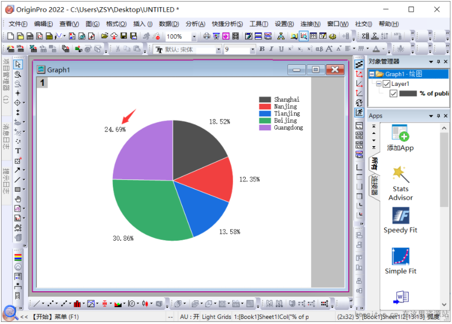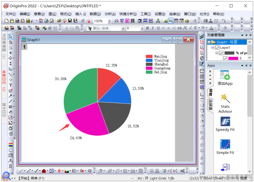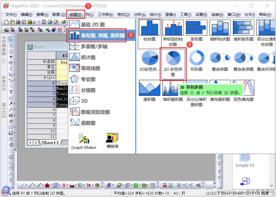 Origin2022如何绘制一个2D饼图?