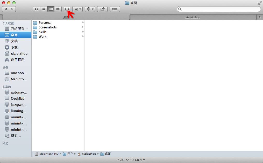 安装好以后, 打开Finder, 点击Finder上的图标即可进入terminal: