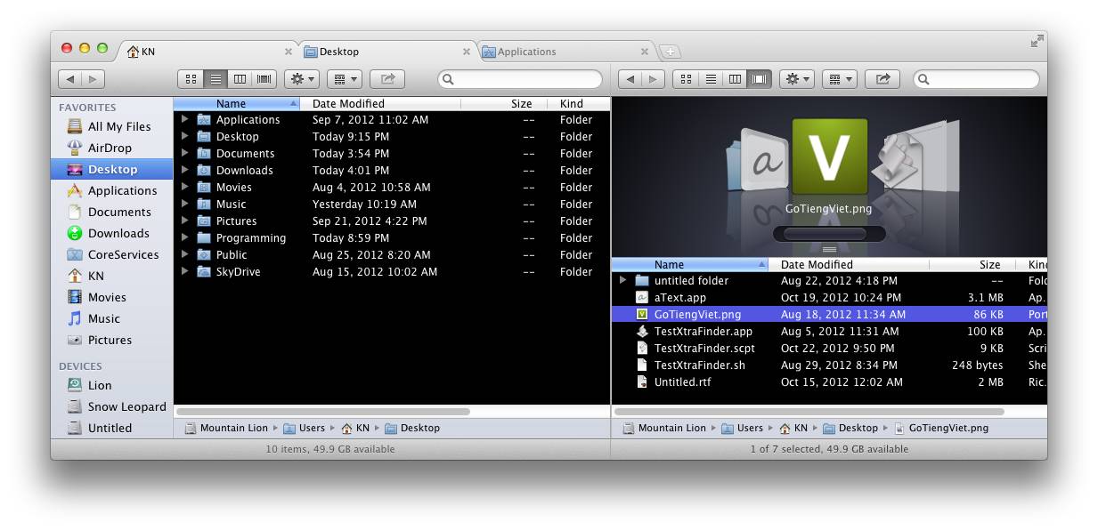 MacBook自带的资源管理器(Finder)已经可以满足一般的需要,但是当你有大量文件维护操作后,你就需要一个更强大的Finder。XtraFinder完全集成到Finder里面,你根本感觉不出它是一个第三方的应用程序,同时还提供很多增强特性,比如: