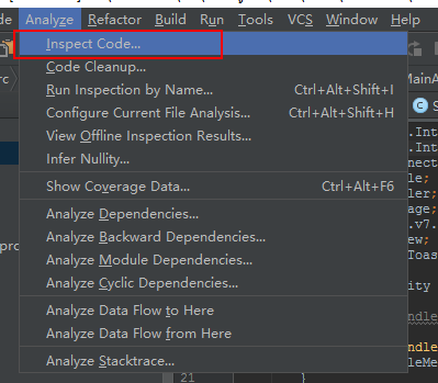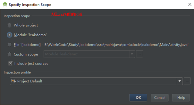 Lint 是 Android Studio 自带的工具,使用姿势很简单 Analyze -> Inspect Code 然后选择想要扫面的区域即可