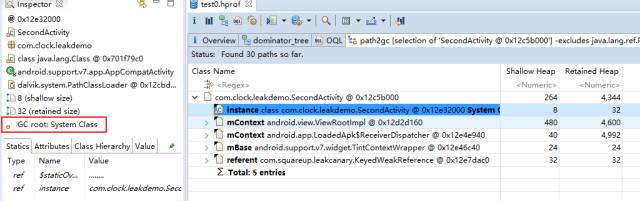 MAT分析内存泄漏的时候,也是查看对象到GC Roots的引用链,来定位泄漏代码的位置。