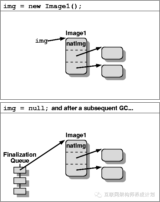 当某一个Image1的实例变为不可达的时候,JVM将调用这个实例的finalize()方法来确保持有图像数据的本地资源被正确回收(就是上面的那个nativeImg)。然而,finalize()尽管是一个特殊的方法,可以被JVM调用,但同时finalize()也是一个普通方法,也可以被其他代码任意调用。并且finalize()方法可以访问类实例的任何对象和字段(比如上面例子的dim和pos)。令人吃惊的是,通过对静态字段赋值,它还能让对象变的重新可达(比如:randomImg = this)。