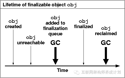 注意,gc需要至少两个周期(也许更多)来回收obj对象,并且在这个期间需要保存所有和gc相关的其他对象可达(以防止obj的finalize()方法中用到)。如果编程者不注意,那么这就会造成短暂的、微妙的,不可预测的资源保持问题。并且JVM并不保证一定能调用到可finalizable对象的finalize方法。有可能在gc发现这些对象的时候,JVM就退出了。
