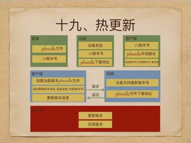 第二步,在APP每次启动,客户端加载当前版本号对应路径的jsbundle文件,并且提供设备类型、当前版本号发JS文件更新请求。后端返回设备支持的最新版本号及jsbundle文件下载地址。客户端检查最新版本信息,如果最新版本不在黑名单,把最新版号设置为当前版本号。