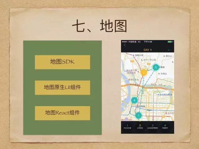 我们把第三方地图SDK做成原生UI组件。然后在JS端做成React组件。