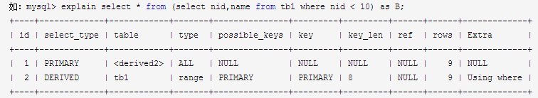 PREPARE prod FROM 'select * from tb2 where nid > ?';